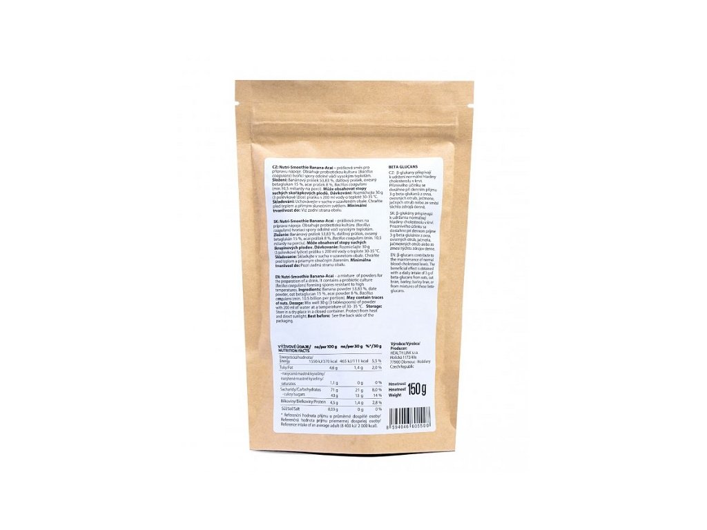 Složení: Banánový prášek 53,83%, datlový prášek, ovesný betaglukan 15%, acai prášek 8%, Bacillus coagulans (min. 10,5 miliardy na porci).
