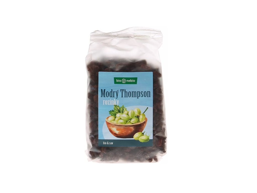Modrý Thompson jsou velmi tmavé rozinky, které jsou výborné pro přímou konzumaci a do různých stolních směsí. Byly sušeny na slunci a jsou nesířené, což znamená, že nebyly konzervovány oxidem siřičitým či siřičitany. Mají výraznou příjemnou chuť a lze je použít i na pečení a vaření, do jogurtu, müsli a desertů. Rozinkami můžeme sladit kaše pro děti. Stačí namočit na několik hodin ve vodě, uvařit spolu s kaší a rozmixovat.