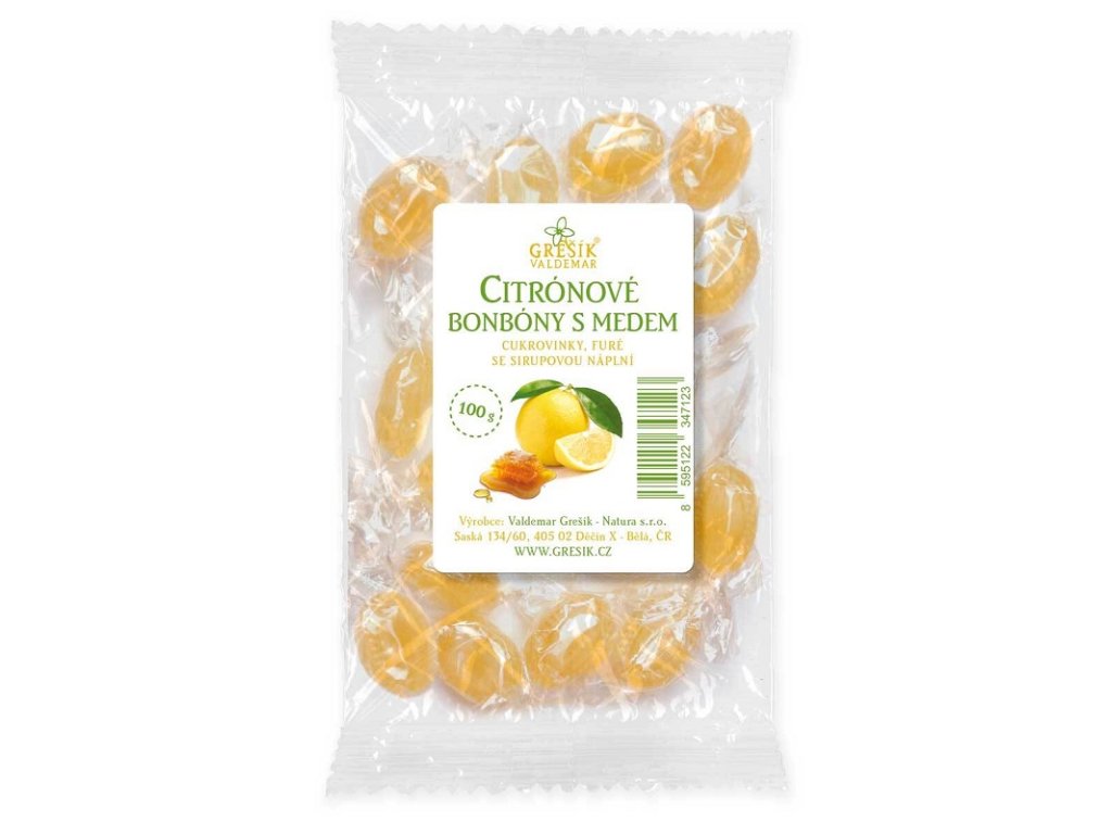 Složení: Glukózový sirup, cukr, med (8,6%), regulátor kyselosti: kyselina citrónová, přírodní aroma (citrónová silice 0,12%).