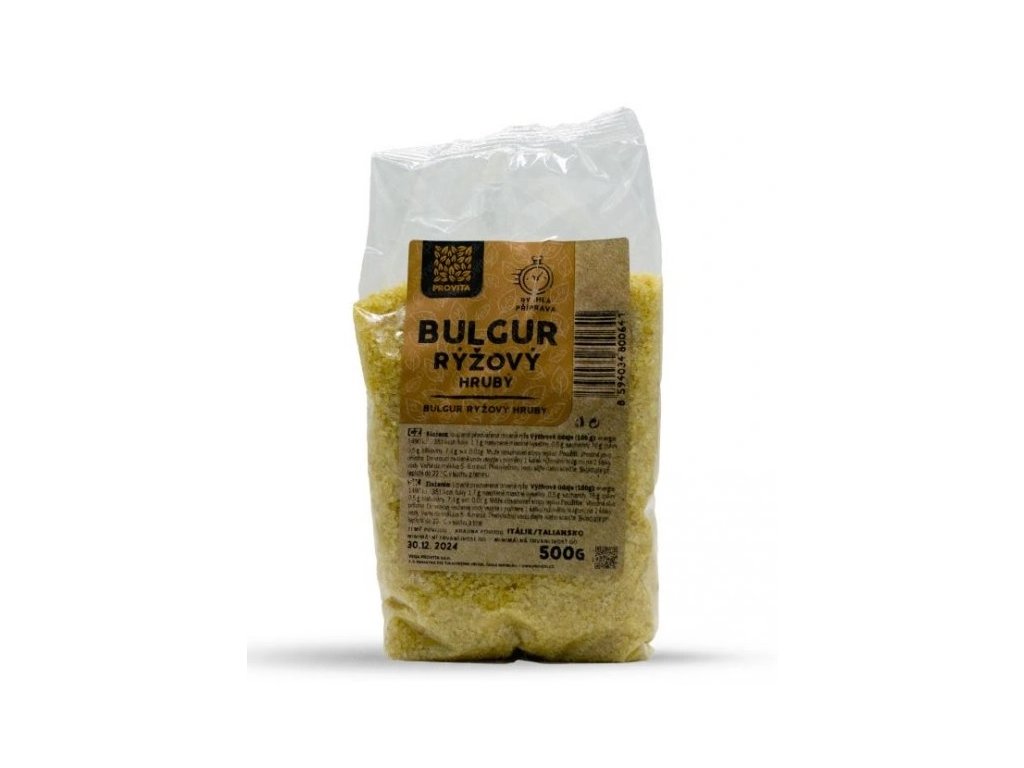 Příprava: Do vroucí osolené vody vsypte v poměru 1 šálek rýžového bulguru na 2 šálky vody. Vařte do měkka 5-6 minut. Přebytečnou vodu slijte nebo sceďte.