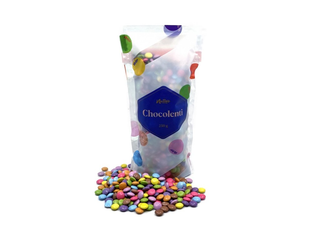 Složení: Mléčná čokoláda 60% obalená barevnou cukrovou krustou 40%.