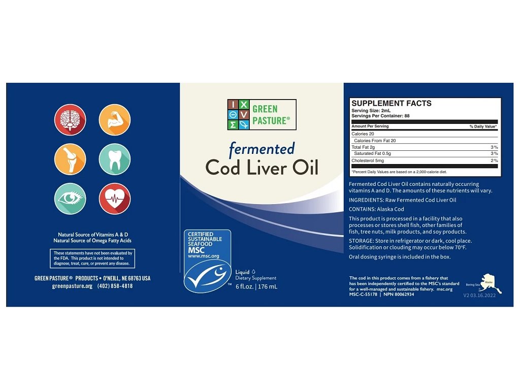 Fermentovaný olej z tresčích jater Bez příchuti 176ml, Green Pasture