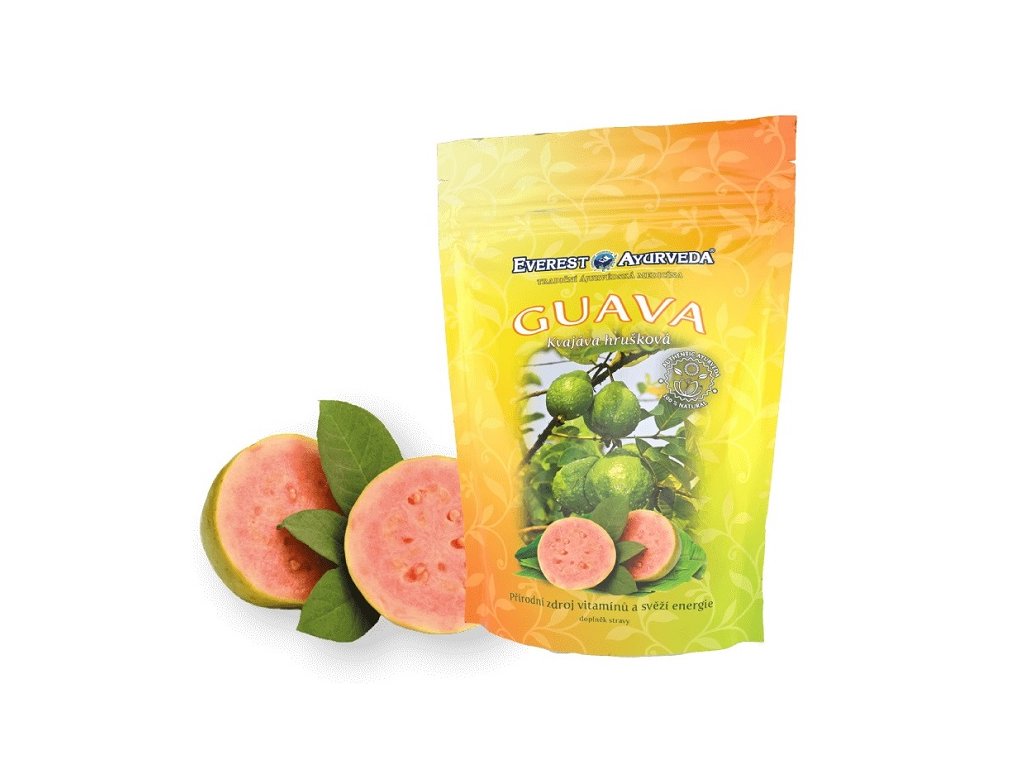 Přírodní zdroj vitamínů a svěží energie. Guava byla známá lidem už před 5 tisíci lety a dnes je považována za jeden ze symbolů tropického ráje. Má několikanásobně vyšší podíl vitamínu C než běžné citrusové plody a kromě řady dalších vitamínů obsahuje také množství antioxidantů, minerálů a vlákniny.