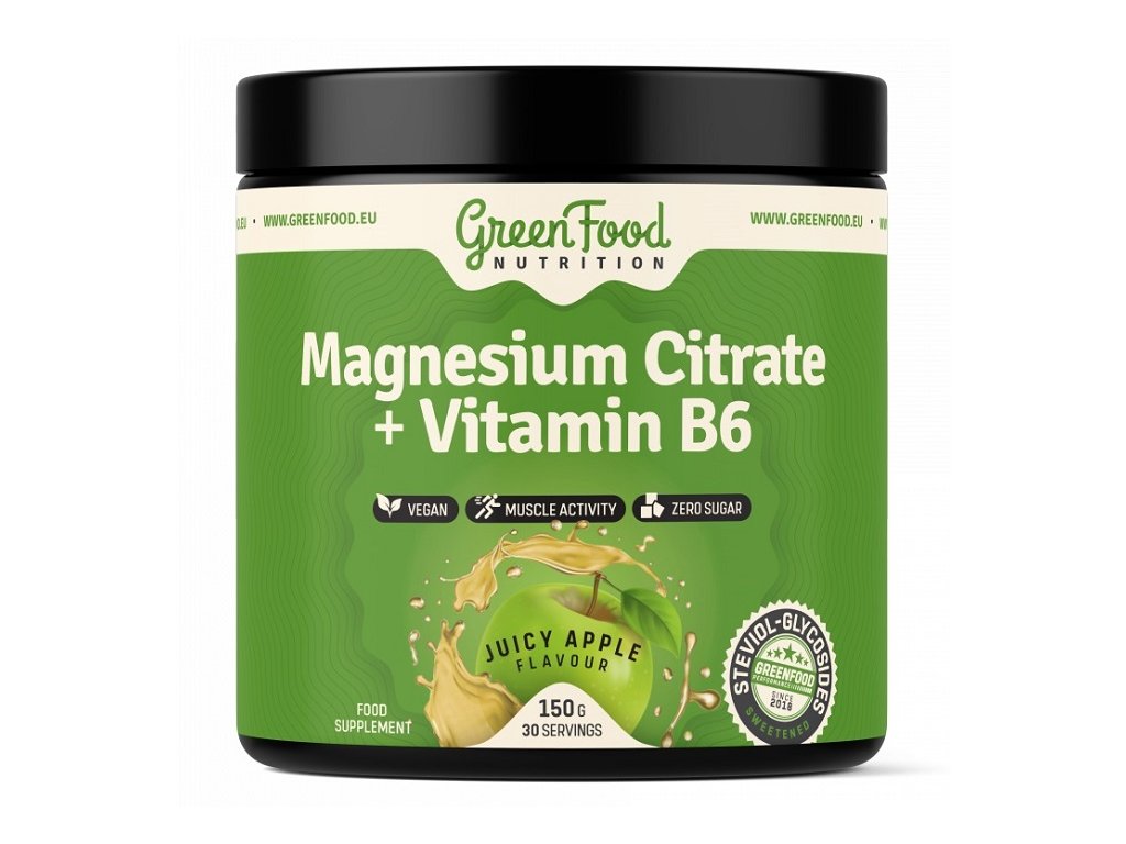 Hořčík citrát + Vitamin B6 Zelené jablko 150g, GreenFood Performance