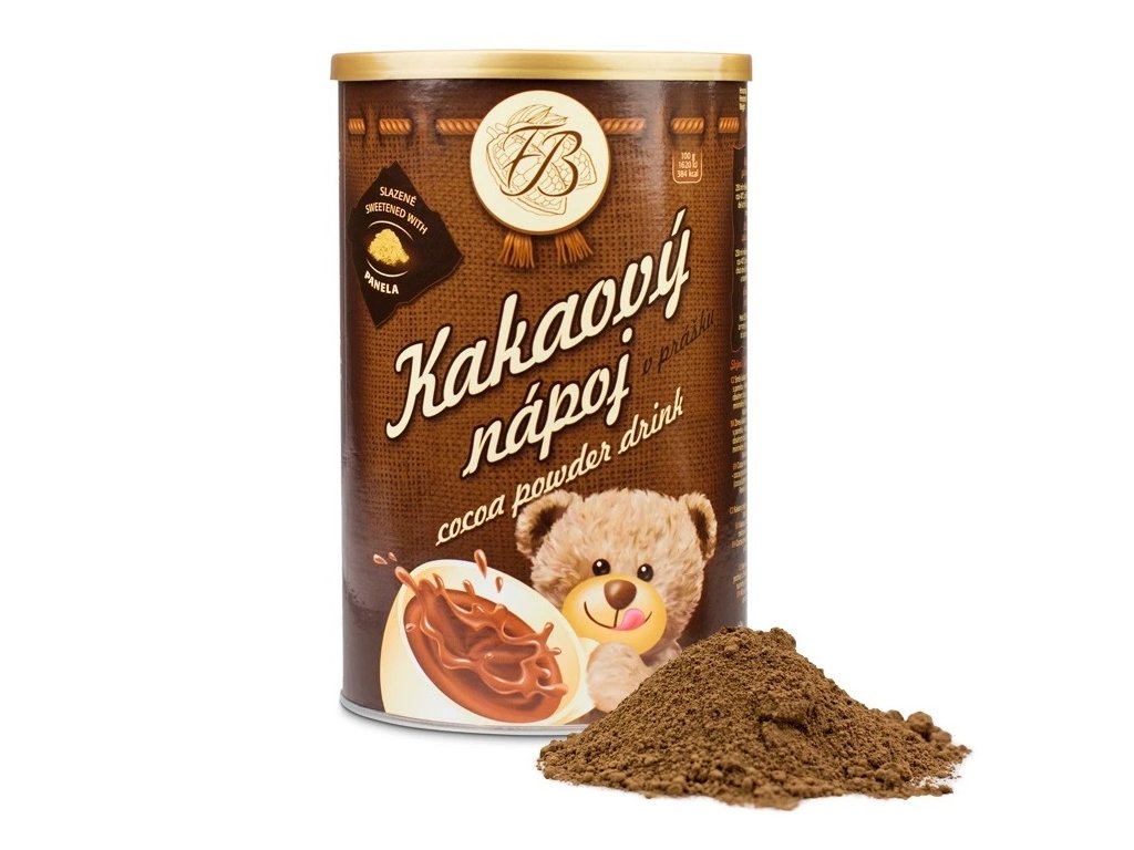 Kakaový nápoj v prášku, který je slazený BIO třtinovou šťávou, která obsahuje spoustu minerálních látek a je vhodná při stavech vyčerpání. Vyrobeno v ČR. "Pravé kakao", které neobsahuje lecitin ani konzervanty.