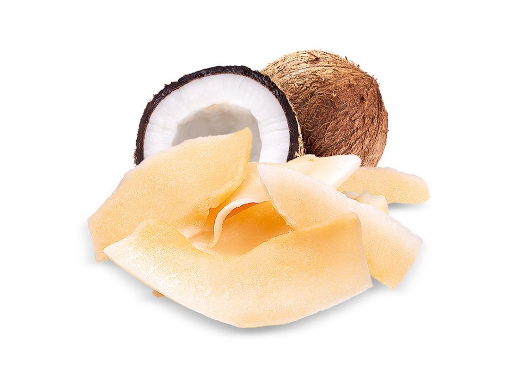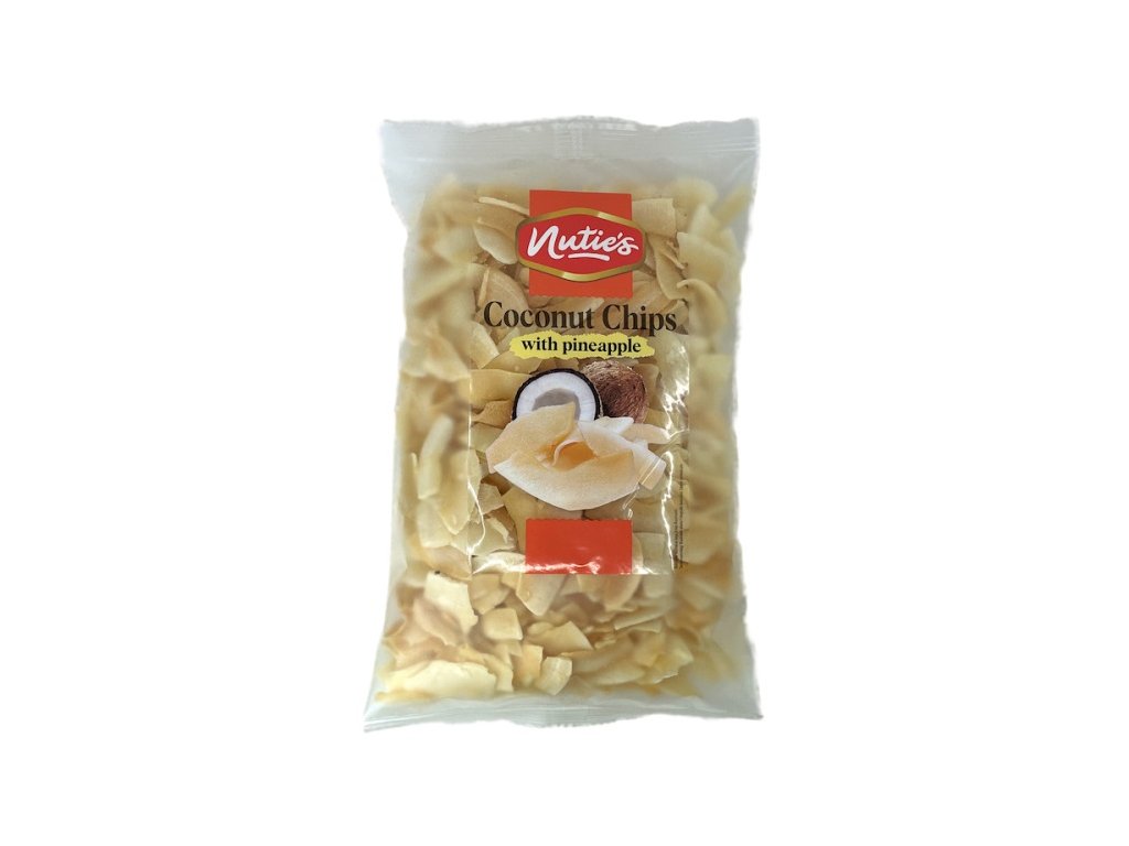 Složení: Kokosové plátky pražené 67%, třtinový cukr 20%, ananasové pyré 11,8%, mořská sůl 0,5%.