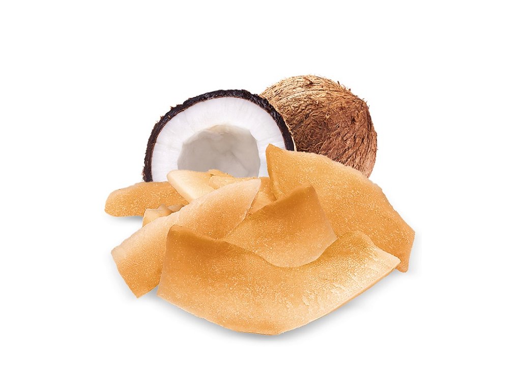 Složení: Kokosové plátky pražené 68%, kokosový cukr 31,5%, mořská sůl 0,5%.