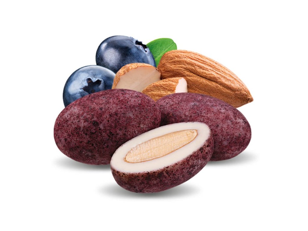 Objevte lahodné mandle jádra v bílé čokoládě s borůvkovým práškem. Tento snack kombinuje chutné pražené mandle s bohatou bílou čokoládou a jemným práškem z lyofilizovaných borůvek, což vytváří neodolatelné čokoládové dražé.