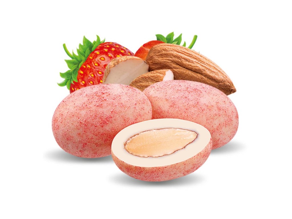 Zažijte jedinečný chuťový zážitek s našimi praženými mandlovými jádry v bílé čokoládě s jahodovým práškem. Tyto čokoládové dražé spojují křupavé mandlové jádra s bohatou bílou čokoládou a jemným práškem z lyofilizovaných jahod, vytvářející luxusní a nezapomenutelnou chuť.