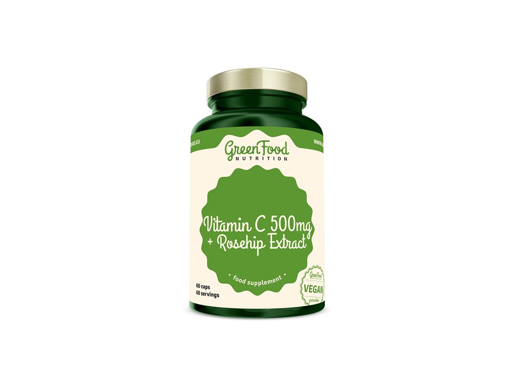 Vitamín C 500 + extrakt ze šípků 60 kapslí, GreenFood