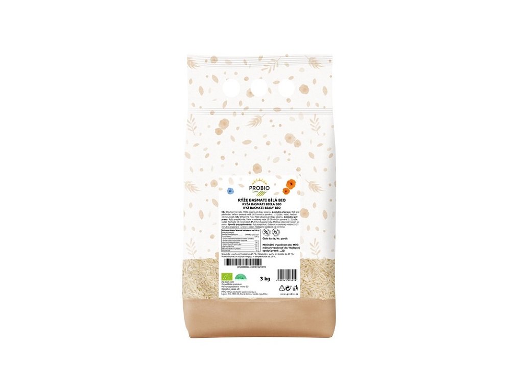 Basmati rýže získala svůj název podle své příjemné vůně. Basmati znamená v sanskrtu „voňavá“. Její zrno je krásně štíhlé a podlouhlé a po uvaření zústává dokonale sypké. Basmati bílá prochází mechanickým loupáním a obrušováním, a tak vyniká čistou bílou barvou. Perfektě se hodí k omáčkám, zeleninovým i masovým pokrmům, dodá zajímavost salátům, nezklame vás v rizotu ani pilafu.