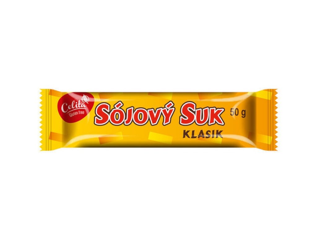 Sladká bezlepková tyčinka ze sójové mouky, kakaa, cukru a tuku s jemně oříškovou chutí a sytou konzistencí.