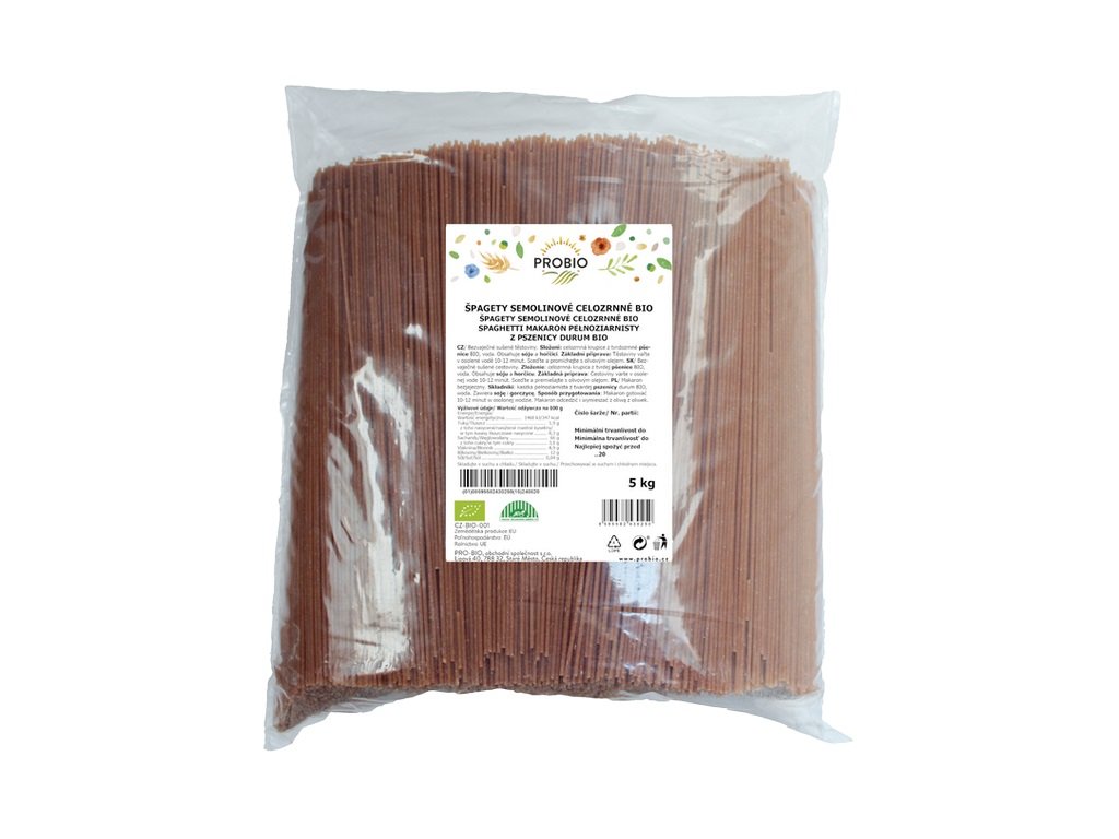 Špagety pšeničné celozrnné BIO 5kg, Probio
