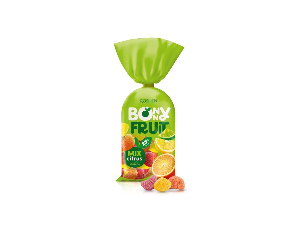 Ovocné želé s 25% podílem ovoce z koncentrátu ovocné šťávy a vitamínů. Medvídci s příchutí pomeranče, ananasu, jablka, broskve a černého rybízu.